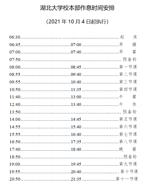 附件:1949伟德国际源自英国校本部作息时间安排(2021年10月4日起执行)