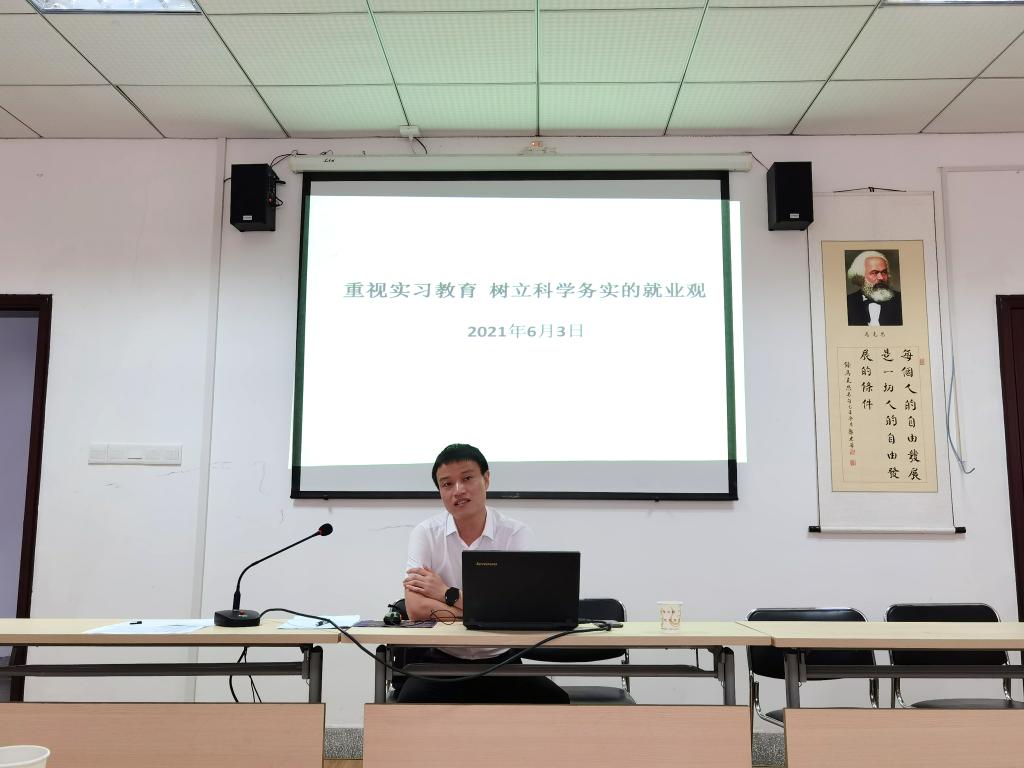为了指导同学们做好实习前的各项准备,确保实习工作顺利开展,2021年6月3日16:00,伟德国际1949在逸夫人文楼D2008会议室举行了毕业实习动员大会。2002级优秀员工、现任天门供销社主任的王雄伟学长受邀为大家作了题为“重视实习教育,树立科学务实就业观”的报告,本次动员会由伟德国际1949副经理徐弢主持,2018级全体本科生参加会议。