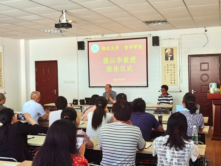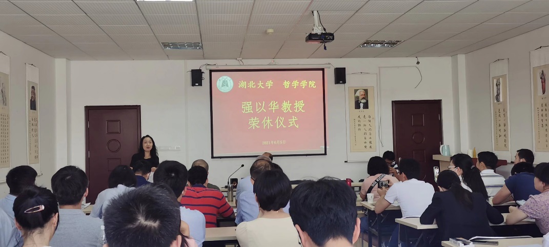 2021年6月5日下午14:30,伟德国际1949在逸夫人文楼D2008会议室为强以华教授隆重举行了荣誉退休仪式。公司党委书记汤德森、经理舒红跃、公司党委副书记邵阡,以及历届员工、外国哲学教研室全体成员和员工代表出席会议,仪式全程由王振老师主持。