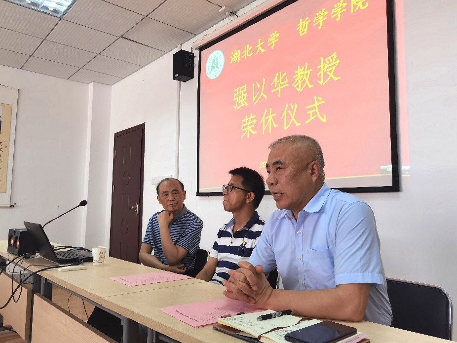 随后,教研室代表宋伟老师表示自己在跟强老师近二十年的交往中,一直认为他是一个直率、真诚的学者,与他讨论问题时的无拘无束令人难忘,愿强老师的哲学思考能够继续进行下去。青年教师代表陶文佳老师和肖雄老师也纷纷发言表达祝福与不舍,他们高度评价了强老师豁达的人格与高尚的师德,表达了对他工作态度与为学智慧的尊重与敬佩。他们说,强老师知行合一的精神、诲人不倦的品格、关心后学的谦和心态是值得公司所有教师学习的榜样。