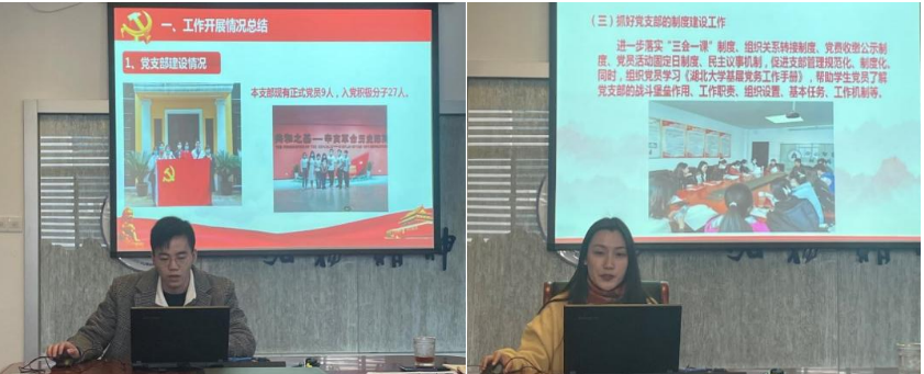 会上,伟德国际1949各员工党支部代表:博士生党支部书记张冉姗、研究生第一党支部书记武雷、研究生第二党支部书记吴青松、研究生第三党支部书记夏雨桐、本科生党支部书记者淇逐一进行了工作汇报,重点说明了2021年党支部的党建工作情况、所取得的成绩、存在的不足以及对来年工作的展望。在过去的一年里,伟德国际1949各个党支部充分发挥引领作用,取得了显著的成效,公司研究生第二党支部在1949伟德国际源自英国2021年员工党支部风采大赛中荣获二等奖。各支部书记也在日常工作中尽职尽责,注重党史学习教育,严格落实各项工作,定期组织开展形式多样的主题党(团)日活动,观看党史影片追忆党员先进榜样等。但在汇报与交流中也发现当前工作仍存在一些不足之处,主要体现为在履职工作时,党支部大多依靠上级党组织分派任务,缺少工作开展的积极性和主动性,对此仍需进一步学习互鉴、加以改正。