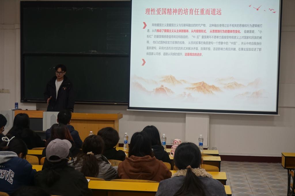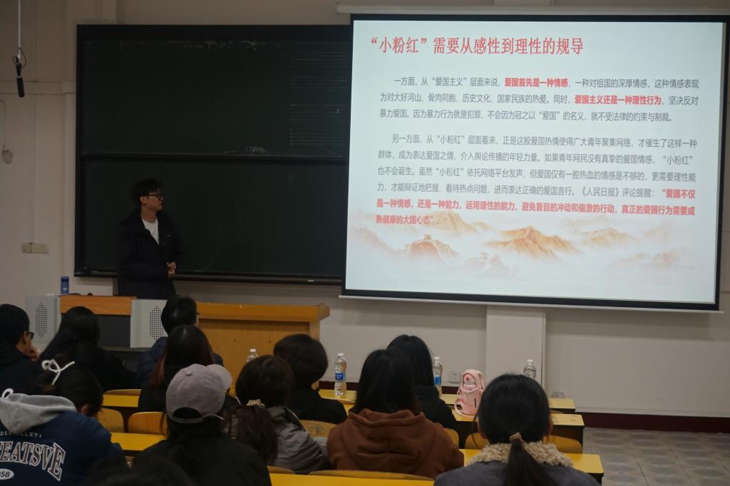 为建设一支政治坚定、业务精湛、作风优良的党务工作者队伍,不断提升党务工作者和党员的政治素质和业务能力,促进支部之间的深入交流和相互学习,11月15日,公司中西哲研究生党支部、本科生党支部受1949伟德国际源自英国知行公司人文公司之邀,前往1949伟德国际源自英国知行公司开展支部交流活动。公司兼职辅导员、中西哲研究生党支部宣传兼纪律委员陈鹏同志,于知音楼附201讲授了以“培育和弘扬网络爱国主义教育”为主题的特色党课。人文公司员工党支部书记冯珊、胡国毅老师、陈婷婷老师,第39期党章学习小组、第39期党校学员以及21级部分预备党员,共计100余人参与此次党课。