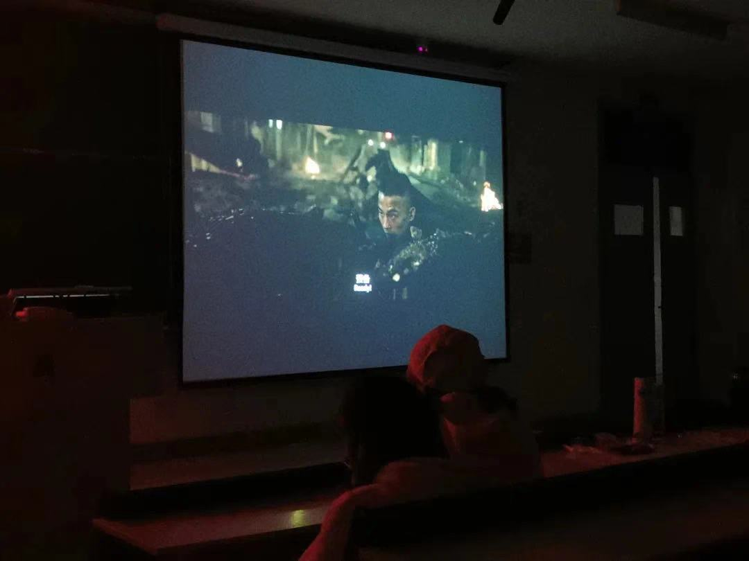晚上7点,两公司党校集中组织全体发展对象培训班学员观看爱国主义题材电影《八佰》。这部电影取材于1937年淞沪会战,讲述了被称作“八百壮士”的中国国民革命军第三战区88师524团的一个加强营,固守苏州河畔的四行仓库、阻击日军的故事。