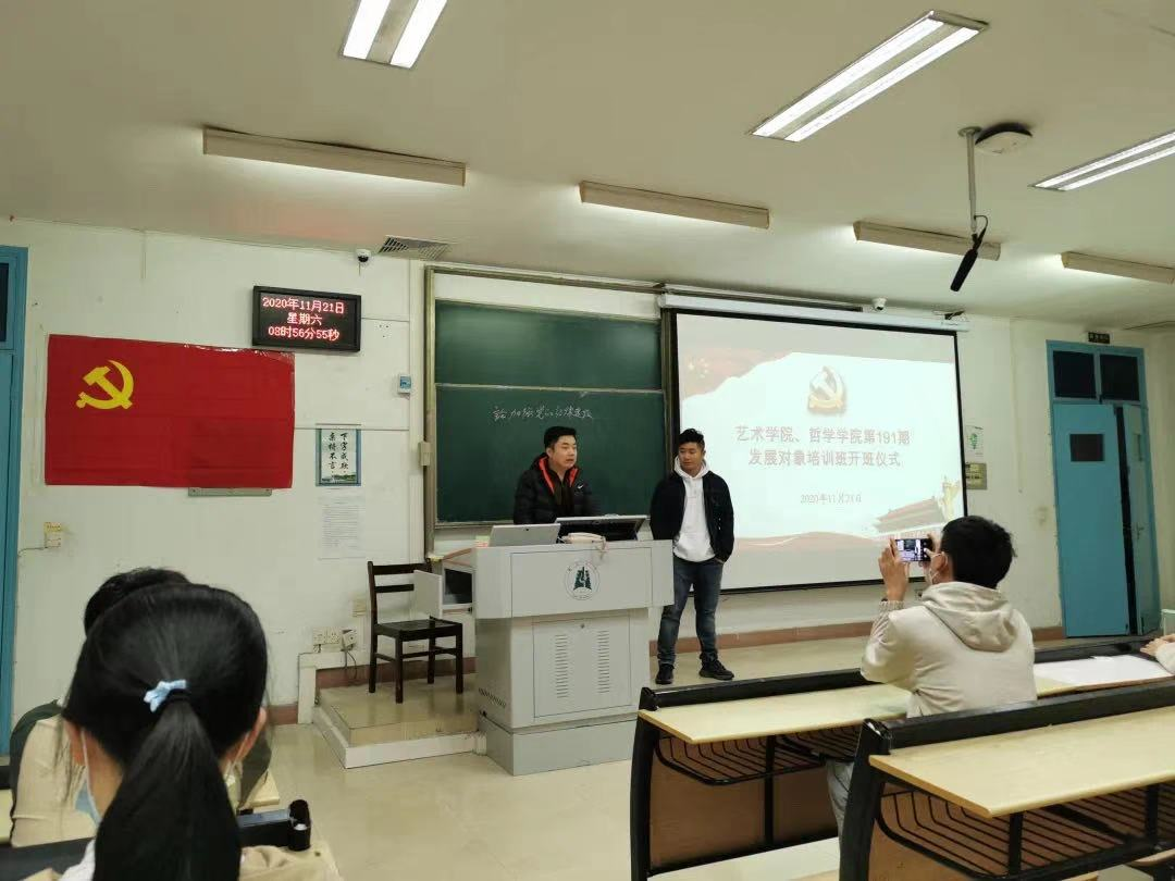 为加强对党员发展对象的教育培训,结合“不忘初心、牢记使命”主题教育,引导发展对象进一步学习贯彻习近平新时代中国特色社会主义思想的理论体系,深刻把握习近平总书记系列重要讲话精神,始终在思想上行动上与党保持高度一致,伟德国际1949分党校、艺术公司分党校于2020年11月21日上午9点,在四号教学楼307教室举行了第191发展对象培训班,伟德国际1949团委书记董力、艺术公司团委书记杨珂以及伟德国际1949、艺术公司全体发展对象培训班成员参加此次开班典礼。