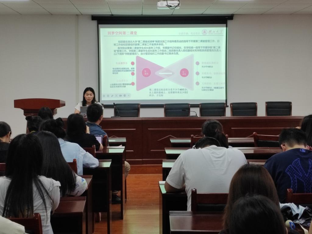 班会第二阶段,团委书记董力接过 “接力棒”,围绕第二课堂展开专题讲解。他详细介绍第二课堂积分规则与获取途径,鼓励同学们尽早行动,积极参与校内外实践活动,合理规划学分积累,为未来发展蓄势赋能。公司第二课堂负责人陈乾佳同学紧随其后,从 “到梦空间” 平台使用、毕业学分要求、学分获取方式等方面,进行系统且细致的解读,消除同学们参与实践的困惑。