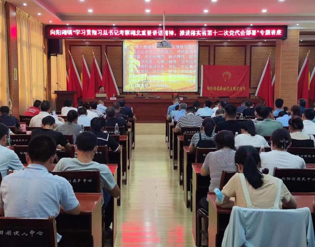 杨海军首先宣讲了习近平总书记考察湖北的重要讲话精神。接着,回顾了湖北省过去五年的工作成绩和经验,重点解读了准确把握新发展阶段湖北面临的新形势新任务、完整准确全面贯彻新发展理念、加快建设全国新发展格局先行区、坚持和加强党的全面领导,切实提高建设全国构建新发展格局先行区的能力和水平等方面对第十二次党代会精神进行了全面系统的阐释和解读,指出省第十二次党代会精神为今后一个时期湖北发展提供了行动纲领。本次理论宣讲政治站位高,理论解读精准,同时结合咸宁市、咸安区和向阳湖镇现实情况进行拓展,贴近基层,贴近农村,贴近群众,具有较强的理论性和实践性,是湖北省社科联社会组织服务基层、服务农村、服务群众的一项有意义的重要活动。