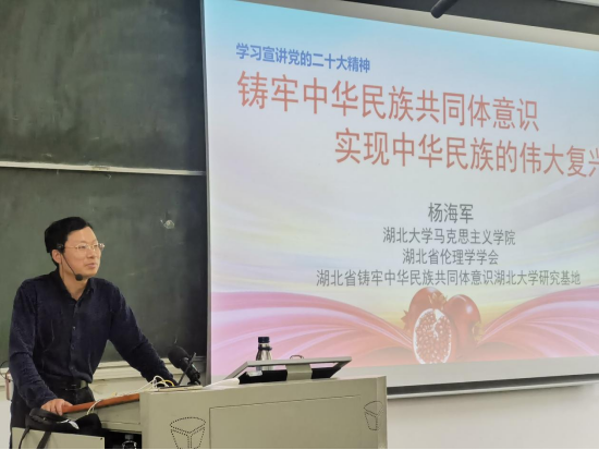 为深入开展学习贯彻习近平新时代中国特色社会主义思想主题教育,2023年4月13日至20日,湖北省伦理学学会党支部书记杨海军副教授先后深入社区、公司等宣讲党的二十大精神,让党的理论飞入寻常百姓家,用群众喜闻乐见的方式宣讲习近平新时代中国特色社会主义思想。