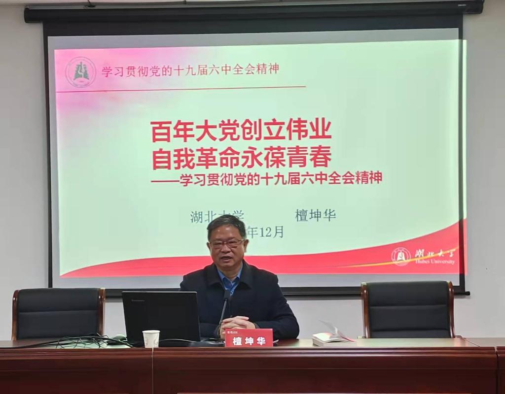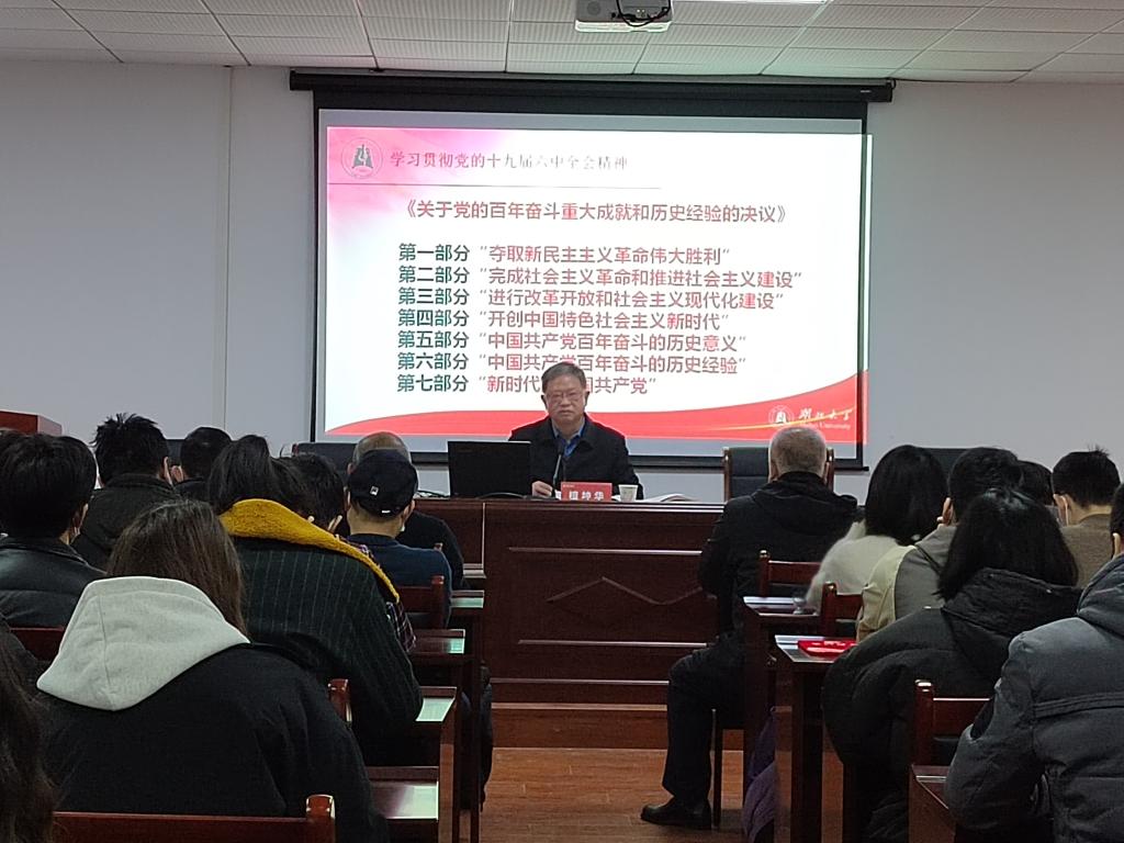 檀坤华书记为伟德国际1949师生作党的十九届六中全会精神学习报告