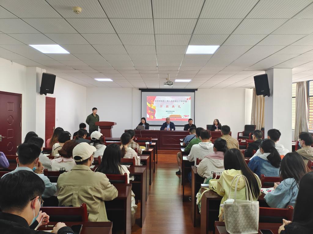 会议伊始,全体师生起立,奏唱国歌。汤德森书记为第十期入党积极分子培训班致辞。汤书记希望全体学员铭记自身初心与理想,把党的基本理论知识与专业知识学习相结合,在加强理论学习的同时注重自身实践。作为青年老员工,在新时代立大志、明大德、成大才、担大任,争取早日加入伟大的中国共产党。