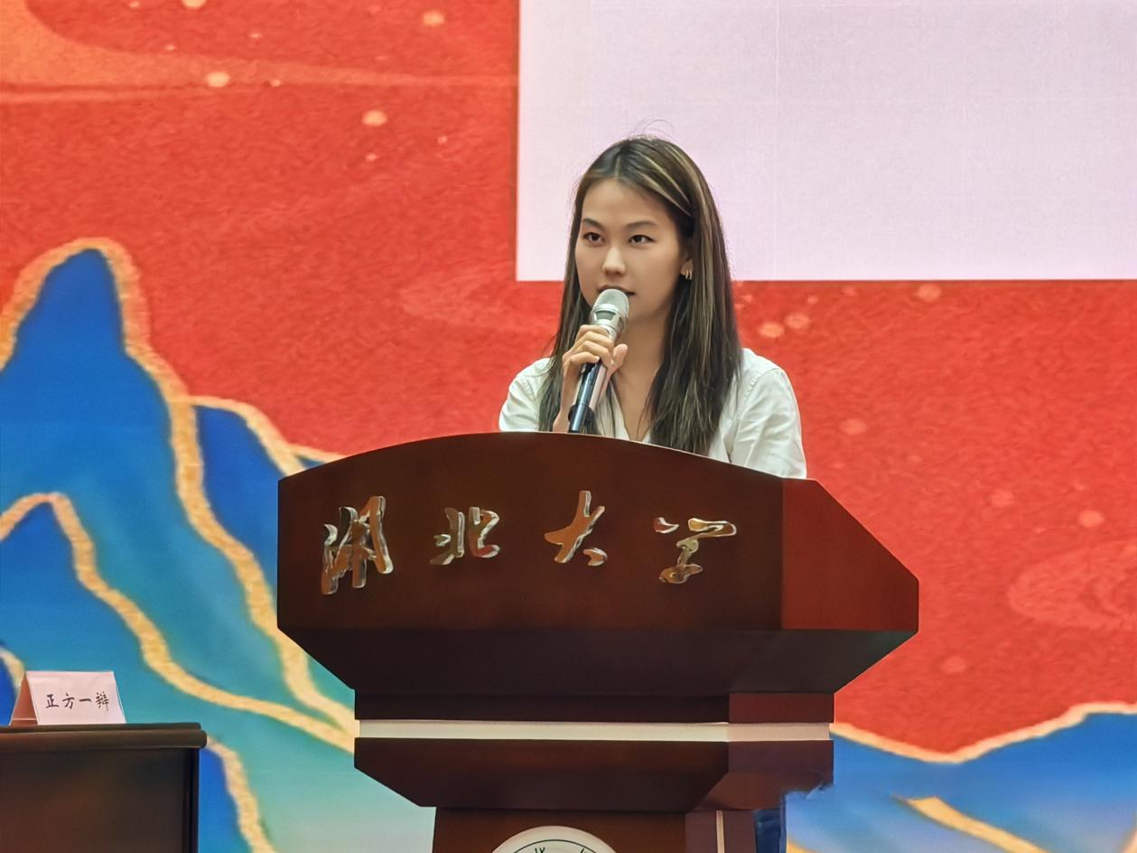黄楚莹从比赛双方的立论和攻防两方面做出了点评,为辩手们的才华睿思和应变能力点赞,并指出了前场与后场正反双方的优势点以及可以继续精进的部分。