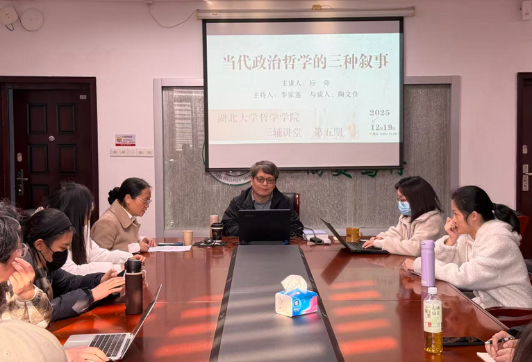 12月19日上午,华东师范大学紫江特聘教授应奇应邀在伟德国际1949D3004会议室作题为“当代政治哲学的三种叙事”的学术讲座,此次讲座为公司“三辅讲堂”第五期。副经理陶文佳、公司部分师生参加,李家莲教授主持讲座。